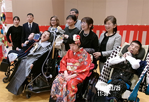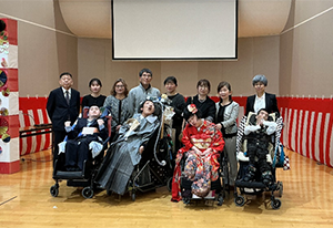 2026年2月25日(水)生活介護事業で二十歳の集いを開催しました。今年度は4名の方々が二十歳を迎えられました。当日は晴れやかな装いに身を包み、少し照れながらも嬉しそうな表情を見せて下さいました。写真撮影ではご家族や職員と笑顔で並び和やかな雰囲気の中で思い出に残るひとときを過ごして頂きました。式の締めにセンター長から冬季オリンピックにちなんで皆さんに「二十歳の金メダルおめでとうございます」の言葉が送られました。これからもそれぞれが自分らしく輝き続けられるよう職員一同応援させて頂きます!!